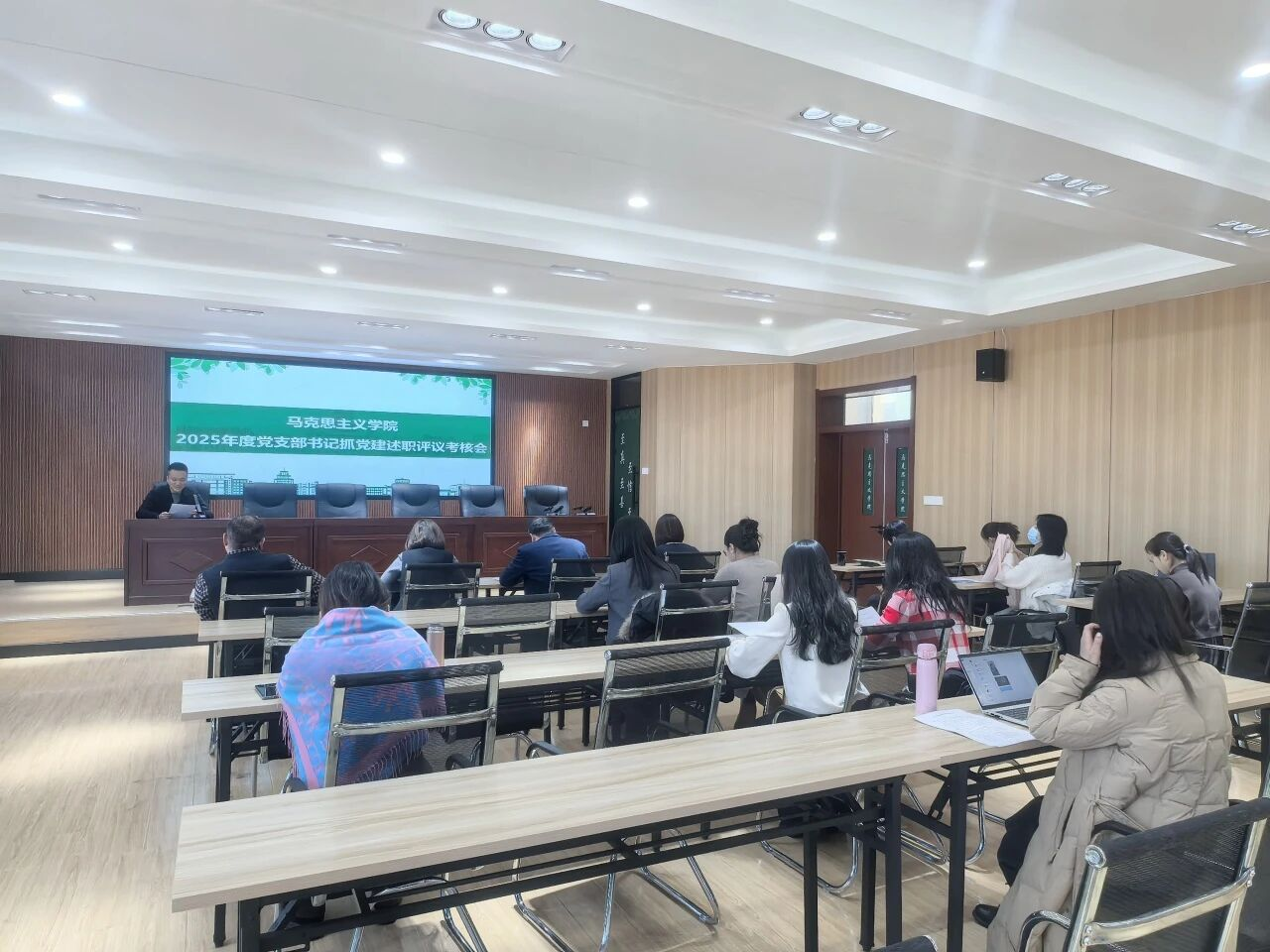 近日,马克思主义学院召开党支部书记述职评议会,学院领导班子成员、全体党支部书记参会。学校正处级组织员任丹婷列席会议。本次会议旨在全面总结党建工作成效,明确后续工作方向,持续强化基层党组织建设。